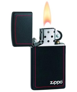 Zippo Windproof Lighter Slim Black Matte W/Zippo Logo & Red Border