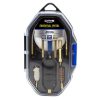 Cleans .40 caliber pistols 100% cotton 3 patches, .40 caliber mop, square patches, long slotted tip and two rods Double ended All Purpose receiver brush .40 cal bronze bore brush with size marked on brush stem 8 aircraft grade Memory-Flex cables with large slotted tip for proper Breech-to-Muzzle cleaning Multi-purpose tool functions as a t-handle, rod handle (attach a rod to the 8-32 threaded insert) and bit driver (insert selected bit into bit holder). Four bits included: 5/32 flat head, T20 hex, Phillips #0, Phillips #2 All items packed neatly in a reusable hard case