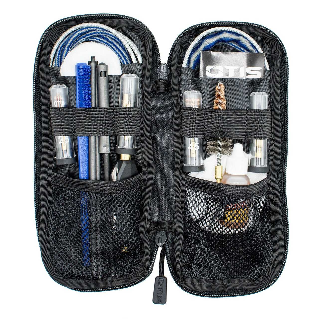 Cleans .223cal/5.56mm rifles and .45cal pistols .223/5.56mm and .45cal Blue Ripcords for quick, one-pass cleaning 100% cotton 2 and 3 patches and small and large slotted tip .223cal/5.56mm and .45cal bronze bore brushes with size marked on brush stem 8 and 30 aircraft grade Memory-Flex cables for proper Breech-to-Muzzle cleaning Multi-purpose tool functions as a t-handle, rod handle (attach a rod to the 8-32 threaded insert) and bit driver (insert selected bit into bit holder). Four bits included: 5/32 flat head, T20 hex, Phillips #0, Phillips #2 8-32 thread solid rod set Blue Nylon All Purpose Brush removes fresh carbon or powder residue but won’t scratch your firearm finish .223cal/5.56mm chamber brush for more precise cleaning Also includes 0.5 fl.oz. Shooter?s Choice FP-10 and instruction manual All items packed neatly in a 10x4x2 soft pack case