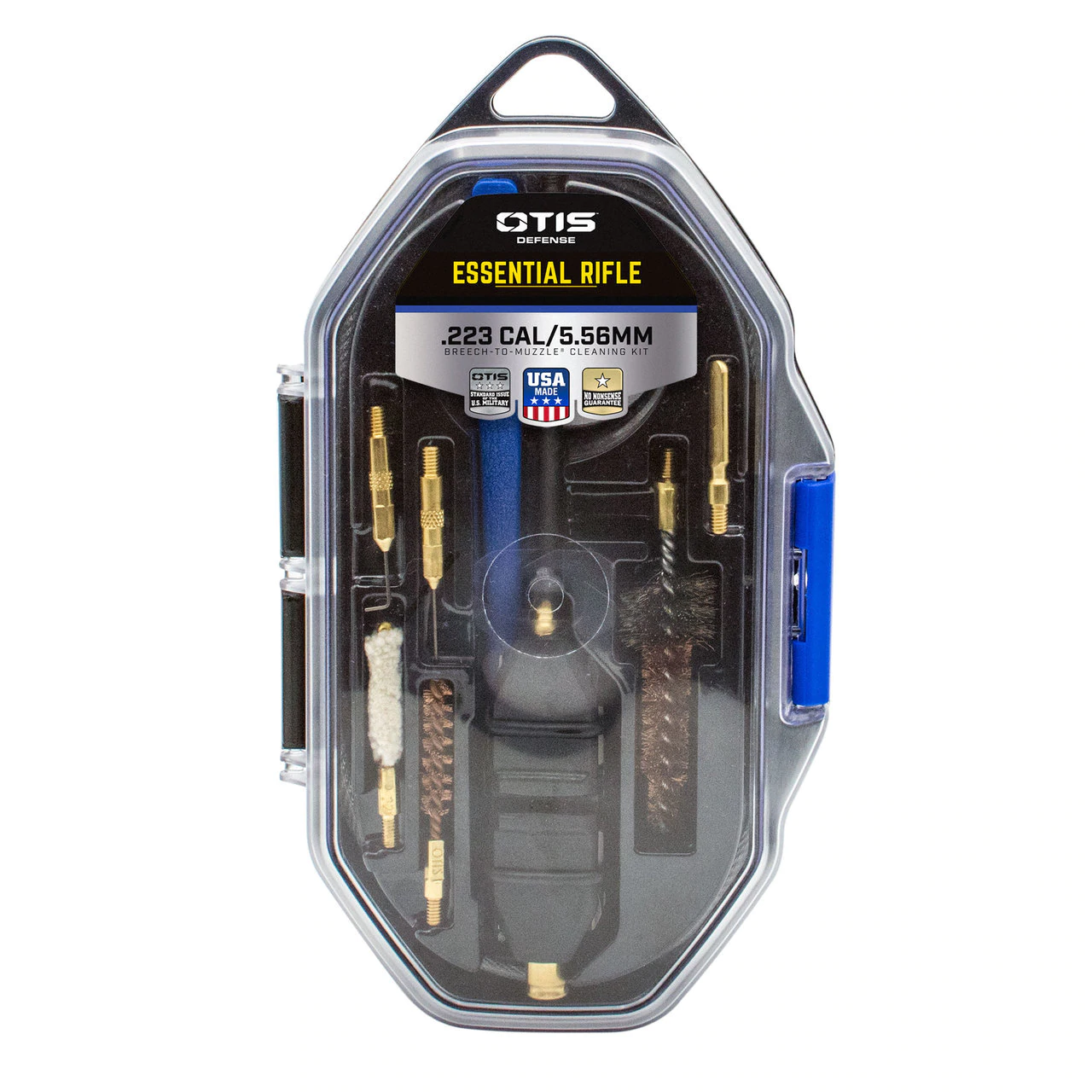 The 5.56mm Essential Rifle Cleaning Kit by Otis offers the essential firearm maintenance gear to properly clean .223 caliber/5.56mm rifles from Breech-to-Muzzle and features a new tool that acts as both a T-handle and a driver for the included 4 bits.