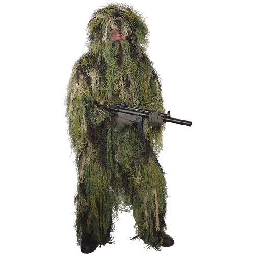 The four-piece suit covers you and your weapon in synthetic fibers that are designed to blend in the urban landscape better than the traditional woodland camo suit. The shaggy appearance helps obscures your outline making it more difficult for the human eye to recognize you as a threat.