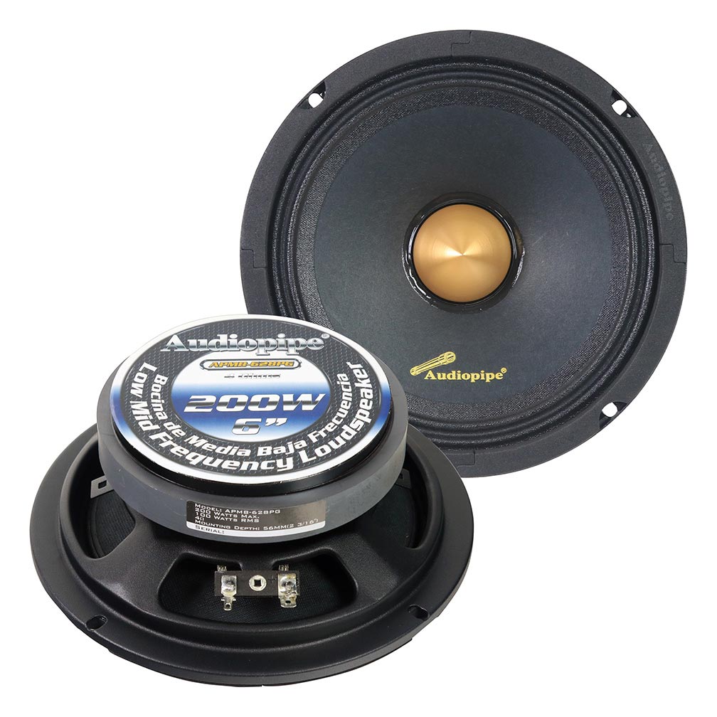 Audiopipe Low Mid Frequency Loudspeaker 6″ 200W Max Each – Gold Bullet Dust Cap