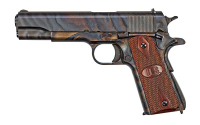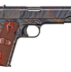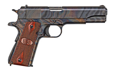 Auto Ordnance Case Hardened, Semi-automatic, 1911, 45 ACP, 5″ Barrel, Steel Frame, Case Hardened Finish w/Clear Protective Coat, Wood Grips w/US Logo, 7Rd, 1 Mag, Thumb Safety, Blade Front/Adjustable Rear Sight 1911GCH