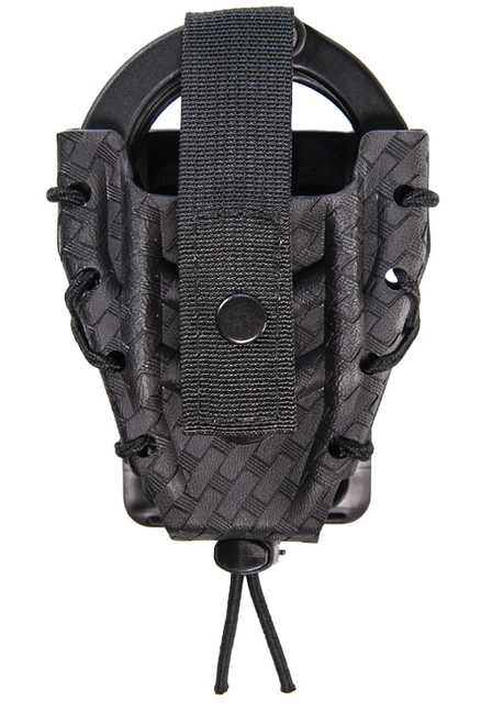 Shock cord TACO design and retention allows for the use of all the most popular handcuffs Made of 100% airline-grade kydex, providing a great finish for easy insertion and draw Basket weave pattern imprinted into kydex