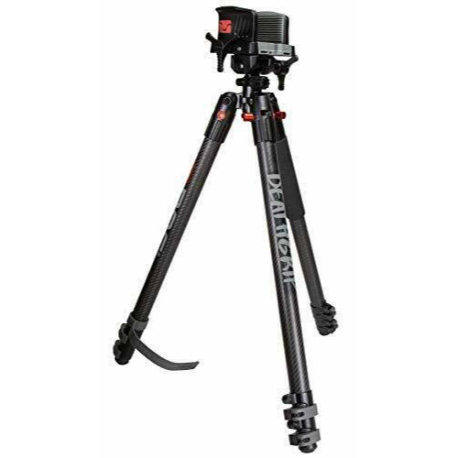 The Battenfeld BOG Deathgrip Carbon Fiber Tripod is engineered to be the most stable shooting platform on the market. Carbon fiber is 15 percent lighter and 17x stronger than aluminum. It secures any weapon for hands-free use and features an integral bubble level. Retractable steel spikes secure into virtually any terrain. The three-position leg lock is great for prone, kneeling, sitting and standing positions. It also features up to 72 inches of height adjustment.