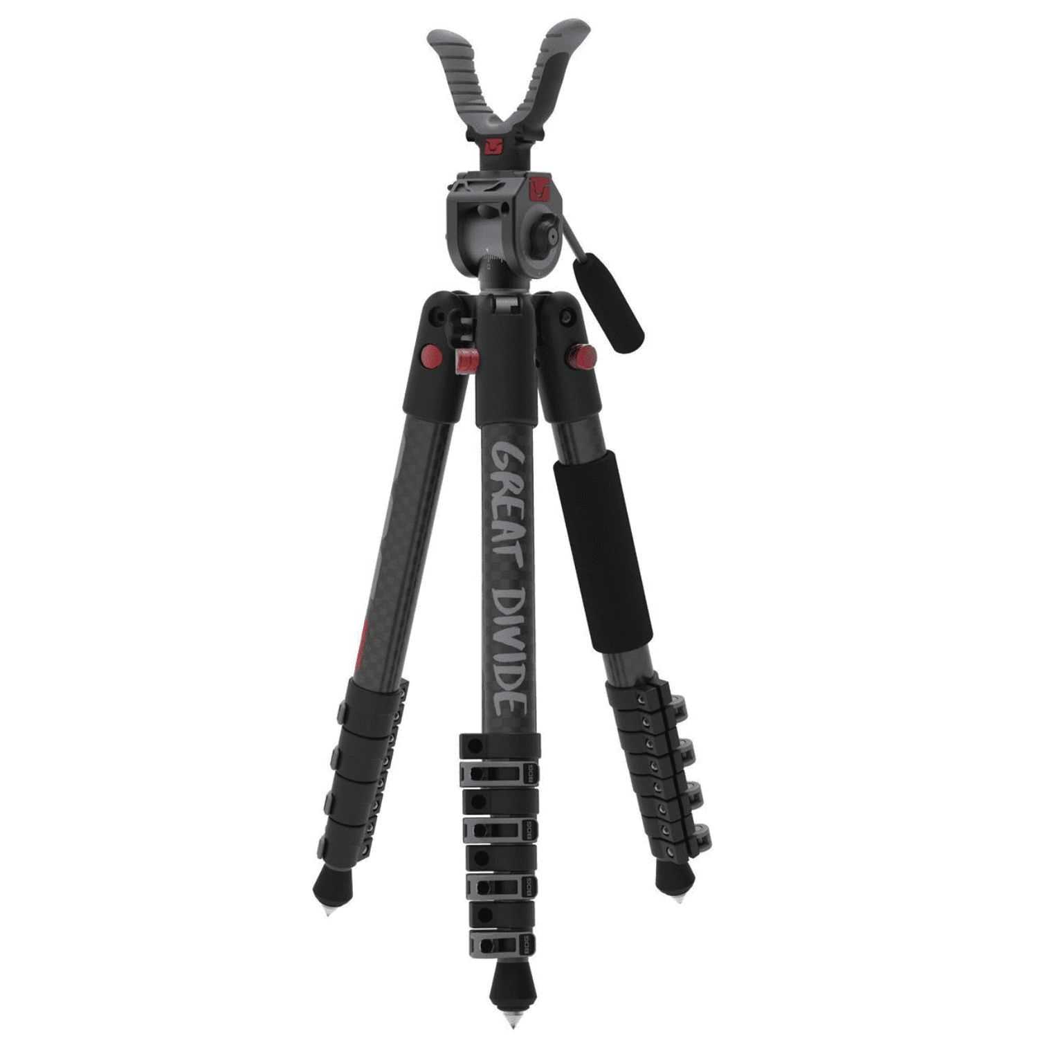 The Battenfeld BOG Great Divide Western Tripod is engineered to be the perfect western hunting tripod. It is constructed of lightweight, high-strength carbon fiber legs. The fluid head is compatible with all Arca-Swiss attachments. It features three-position leg locks for prone, sitting, kneeling and standing positions. A retention strap is included and it djusts up to 68 inches.