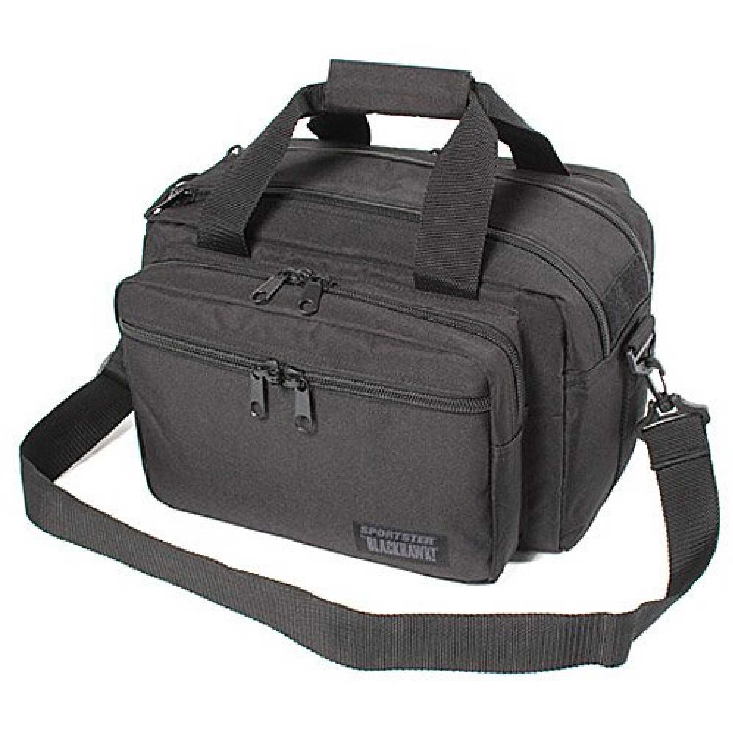 Constructed of tight-weave, heavyweight 600 denier polyester with thick PVC laminate for stability, this bag features three large dual-zippered compartments and one slash pocket.