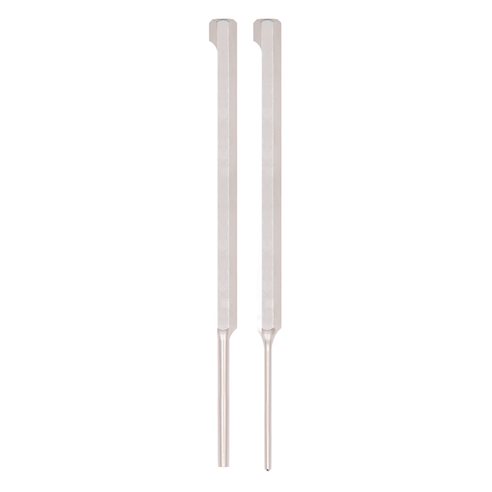 Two punches, one simple solution to the difficult to access bolt catch retaining pin. The orientation of the pin, close proximity to the lower receiver, distance required to safely punch a pin and the difficulty in getting the pin started makes it a real pain with standard punches. Our simple solution, a one-two punch combo specially designed to fit flush against the receiver without damaging it and long enough to reach the pin. It features a roll pin punch for removing pins and a magnetized roll pin starter punch that eliminates the need for a third hand. Smart, simple, frustration free.