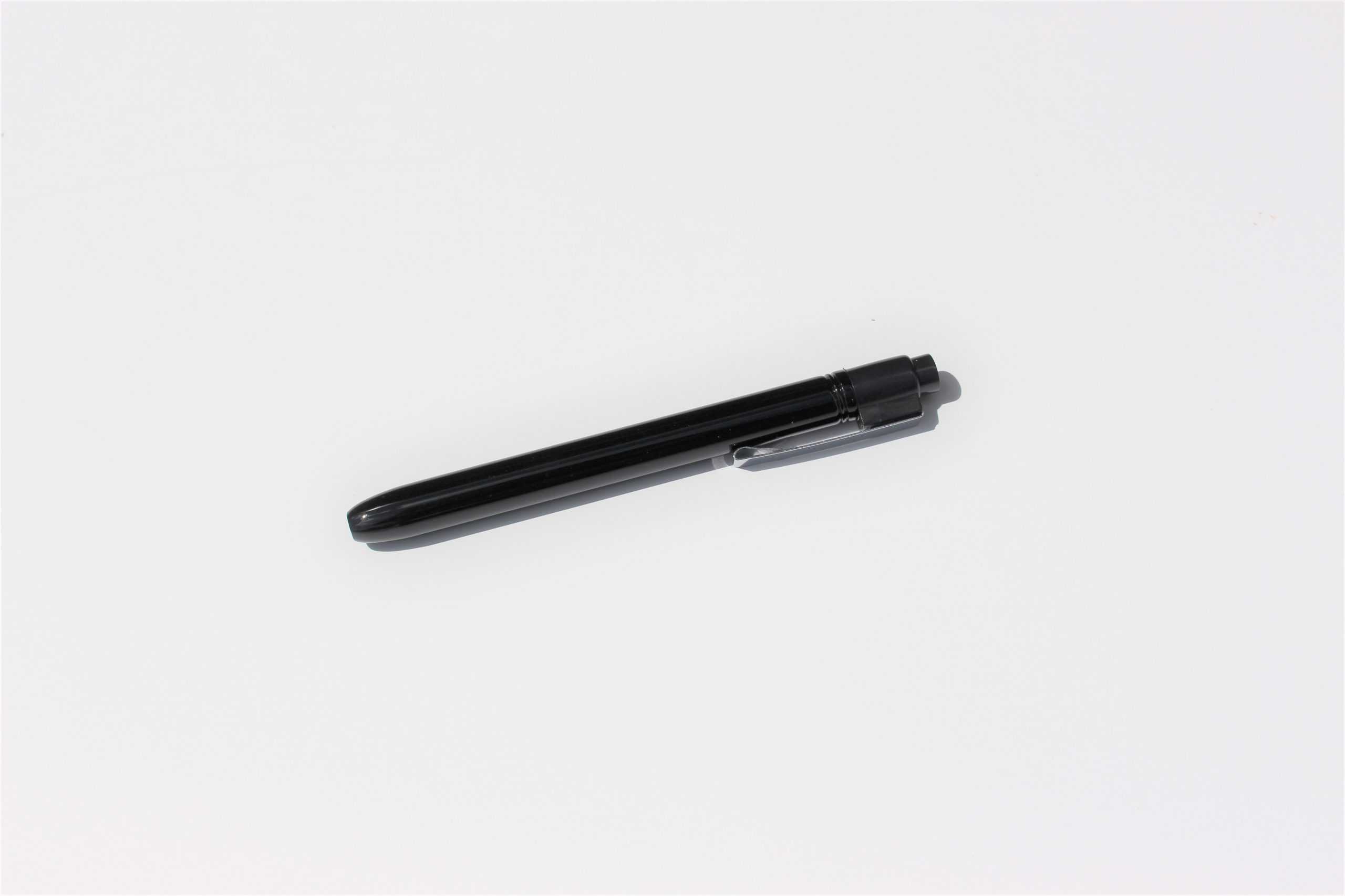 Push-button, reusable pen light. Activated by depressing, new heavy-duty switch. Features a bright-white bulb. Two AAA batteries included. Measures 6 x 1/2.