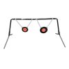 The Caldwell Target Turner presents and hides target for interactive shooting and training. The adjustable speed presents target from a 1 – 6 second delay. It includes reusable target backer for targets up to 12 inches x 18 inches. It accepts all IDPA, IPSC and NRA Action Pistol Cardboard Targets and is powered by 8 AA batteries. The average battery life is 8 hours. It quickly collapses into the included carry bag for transportation and has a rapid setup in less than 60 seconds. The low center of gravity and stake holes allow the turner to operate even in high wind conditions. Targets not included.