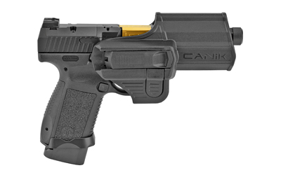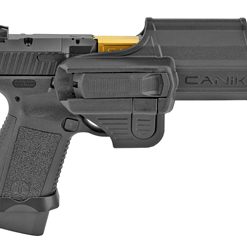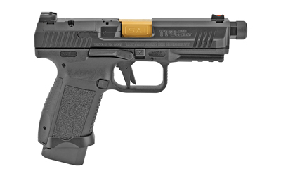 CANIK TP9F Elite Combat Executive, Striker Fired, 9MM, 4.73″ Salient PVD Gold Finish Threaded Barrel, Polymer Frame, Aluminum Speed Funnel Mag Well, Black Finish, Fiber Optic Front Sight, Vortex Viper Sight Included, Charging Handle, 1 15Rd and 1 18Rd Magazine HG4950V-N