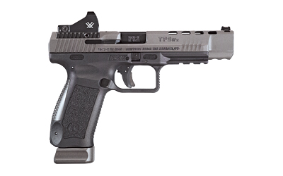 CANIK TP9SFx, Striker Fired, 9MM, 5.2″ Match Grade Barrel, Polymer Frame, Tungsten Grey Finish, Warren Tactical Sights, Includes Two 20 Round Magazines, Holster, Interchangeable Backstraps, and Vortex Viper Red Dot Sight HG3774GV-N