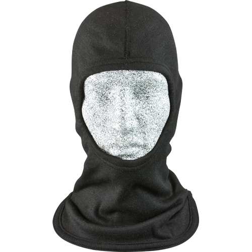 Double ply hood throughout; Designed to provide coverage of the neck, upper chest and to the top of the shoulder blades; 3 inches longer in front than NFPA requires for firefighter hoods; Shoulders are contoured to reduce bunching of the bib; Flate-stitched seams; X-Heavy 1/2 inch wide elasticized face openings; Cover stiched bound drape. Hood is UL Classified and is compliant to the NFPA 1971 – 2000 edition. This high quality firefighter hood is made of Carbon Shield material.