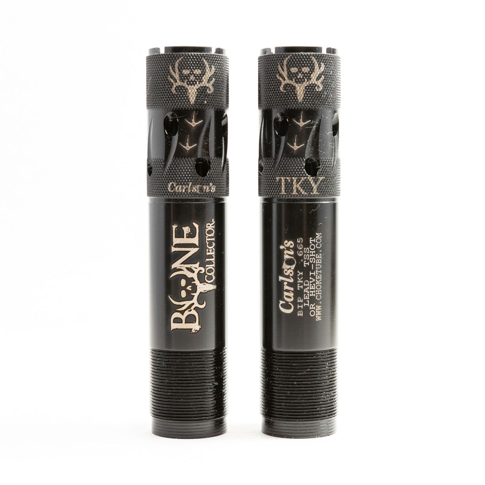 Carlson?s Ported Bone Collector Turkey Choke Tubes feature a super tight, pattern tested constriction that throws extremely tight patterns with all shotshell ammunition loaded for turkey hunting including lead, nickel-plated, copperplated, bismuth, hevi-shot, tungsten, and TSS. A longer taper section to the constriction (parallel section of choke tube) insure tight patterns with less flyers.? More pellets on target every shot! ?The Bone Collector Choke tubes are precision-machined from 17-4 heat treated stainless steel and feature a non-reflective matte black finish. Each choke tube constriction has been pattern tested and has thrown the best patterns with 4 through 10 shot. If you wish to use shot size?s larger than #4 shot, use a more open choke tube for optimum patterning. Do not use any steel shot larger than #4, slugs, sabots, rifled slugs, & 00/000 buckshot through a Carlson?s Turkey Choke. Remember to pattern your shotgun choke tube with the specific shot shell load you are going to be using. Different types and manufacturers of ammunition will throw different patterns from the same choke tube.