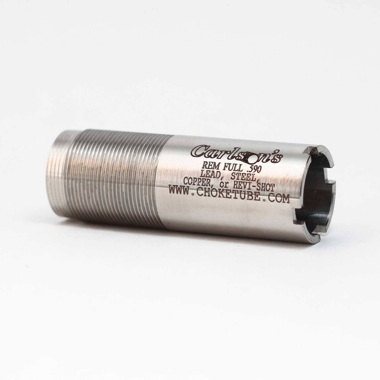 Carlson?s Remington 20ga Flush Full Choke Tubes are made of 17-4 heat treated stainless steel. Steel or lead shot may be used in these choke tubes. Steel shot larger than bb should not be used in any choke tighter than full. Lead, copper-plated, nickel, hevi-shot, or bismuth may be used in these choke tubes.