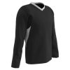“The Champro KEY Shooter Shirt is an constructed of an active jersey 100 percent polyester mid-weight jersey. It features “”stretch Pin-Dot”” constructed of 95 percent polyester and 5 percent spandex mesh. It features a solid body with mesh shoulder and armhole insert with triangle side insert of self material. The full long sleeve feature double needle hemmed sleeve end, double needle hemmed bottom, and a self material V-neck.”