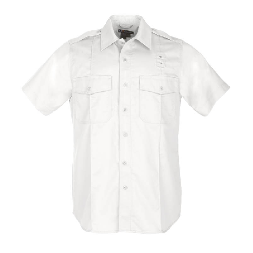 Engineered with input from operators in the field, the 5.11 PDU Class A Short Sleeve Twill Shirt consistently exceeds the expectations of law enforcement officers around the world. An ideal foundation for your PDU or Dress Uniform, the Class A Short Sleeve Twill PDU Shirt is crafted from our 5.78 oz. poly/cotton twill fabric for the perfect blend of rugged durability, reliable performance, and breathable comfort. A Teflon treatment offers enhanced resistance against stains, moisture, and soil, permanent creases ensure a crisp, professional appearance, and a bi-swing shoulder design provides full mobility. Additional features include underarm vents to keep you cool and dry, an integrated badge tab, an epaulette kit, and pass-through mic cord access to keep you connected. Rugged durability, breathable comfort Permanent creases ensure clean lines Underarm vents maximize breathability Teflon treatment for stain, soil, and moisture resistance Pass-through mic cord access Integrated pen holders in chest pockets Bi-swing shoulders for full mobility Secure badge tab Includes an epaulette kit 5.78 oz. poly/cotton twill fabric Triple needle stitching Bartacking reinforcements at key stress points Melamine buttons wont melt, burn, or crack Fishtail hem for a confident fit