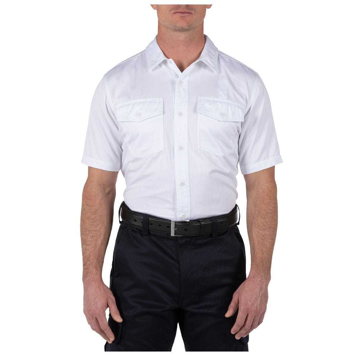 Ready to answer every call through a busy shift, the Short Sleeve Shirt backs you with a vital layer of safety (certified to NFPA 1975, 2014 edition) in a high-tech, low maintenance fabric. It?s made with a soft, yet durable cotton twill that?s wrinkle-resistant and stitched with protective Firefly thread. The Company Shirt also features heat-resistant melamine buttons and a modern, yet professional collar shape with collar stays. Badge tab and epaulette kit included.