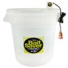 Self contained 11-1/2 quart insulated pail. Maintains constant water temperature and proper aeration. Runs 100 hours on a pair of D cell alkaline batteries. Waterproof. 1/2 styrofoam shell removes for quick cleaning. Insulated hinged door. light to carry and tough enough to sit on.