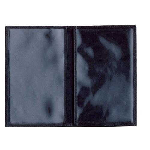 Internal clear ID windows for instant indentification Professional, simplified bifold design Material: Black leather
