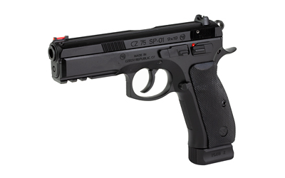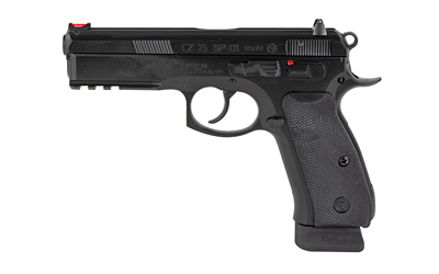 CZ 75 SP-01, Double Action/Single Action, Semi-automatic, Metal Frame Pistol, Full Size, 9MM, 4.6″ Barrel, Steel, Polycoat Finish, Black, Black Rubber Grips, Fiber Optic Front/Fixed Rear, Manual Safety, 19 Rounds 89152