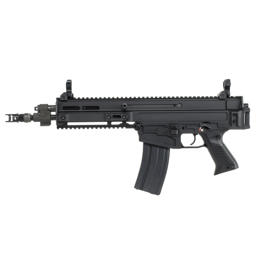 Imported from the Czech Republic as a pistol, this Bren with its 11in. barrel has proven a popular SBR candidate for customers wanting to convert it to an NFA firearm. Those who don€™t wish to register with the ATF can always equip it with our adapter kit that allows easy installation of aftermarket arm braces or other devices meant to help stabilize large format pistols like this. Chambered in .223/5.56—45 and using the ubiquitous STANAG magazine from the AR15/M16, it easily accepts optics and lights on its top and bottom Picatinny rails. An effective two-port muzzle brake helps keep the pistol solidly on target and reduces recoil and muzzle flip.