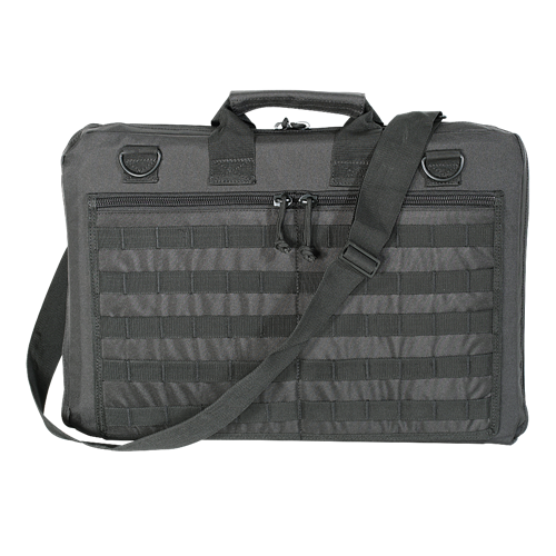 Safely carry and protect your pistols, ammo and shooting accessories with this Deluxe Terminator Range Bag from Voodoo Tactical. It fits two pistols in the outside padded two-way zipper compartments, with two additional zippered pockets on the other side. The bag opens flat with a two-way zipper for easy access to an organized array of storage that includes eight pistol magazine pouches and eight rifle mag pouches, both with velcro flap covers, a full-length zippered pouch, plus large and medium bonus zippered pouches.