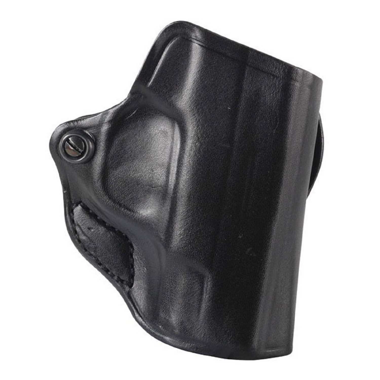 “DeSantis Mini Scabbard Black Right Hand Glock 43 is a unique holster that has been reduced to the barest of essentials, yet offers a secure grip on the handgun thanks to exact molding and adjustable tension device. The Mini Scabbard(R) will accommodate belts up to 1 1/2″” wide. Available in black or tan unlined leather.”