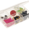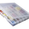 Impact resistant-plastic (3) Two LockJaw latches for secure transport and storage Removable dividers to make 15 to 52 adjustable compartments Built-in handle