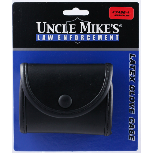 Double pouch with fold up design has two pockets for standard latex gloves Fits belts up to 2 1/4 Made of mirage or nylon, laminated to 1/8 closed cell foam core and knit interior to prevent snagging