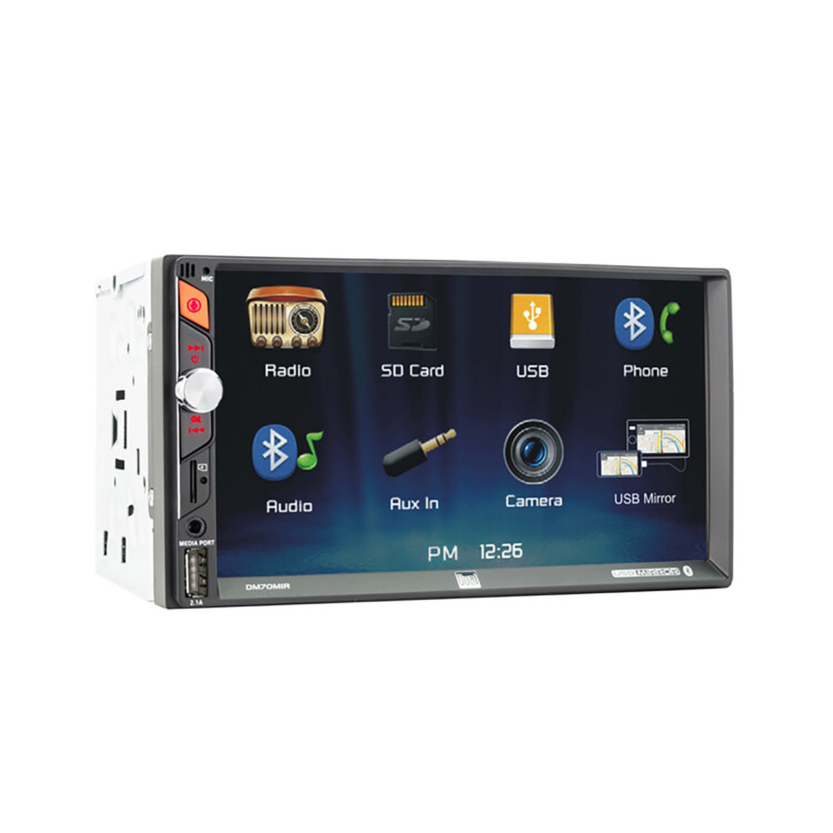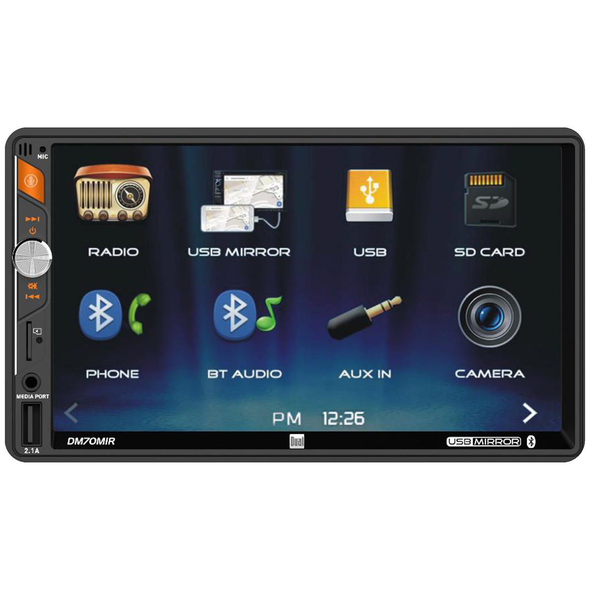 Dual 7″ Mechless Double DIN Multimedia Bluetooth Receiver USB Mirroring for Android & Apple,1