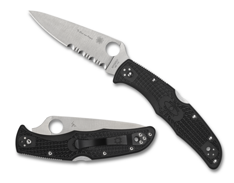 tough, fiberglass-reinforced-nylon handle scales of this knife are injection molded in black accented by a bright blue lining. VG-10 stainless steel blade combines the low-friction edge geometry