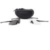 The ESS Interchangeable Component Eyeshield (ICE) is a lightweight, frameless eye protection system that offers a unique combination of high-impact resistance, unrestricted field of view, and interchangeable lenses for effective eye protection in any light condition. Equipped with the new ICE temple designs, the ICE eyeshield features improved fit with headborne equipment and increased ease of temple adjustment and lens interchange. Adjustable earbends allow for a comfortable, secure, anatomical fit. Telescoping temples offer bend-to-fit inner-wire ear tabs and a snap-on leash system. All ICE lenses provide 100% UVA/UVB protection, and exceed ANSI Z87.1-2010 and the U.S Military .15 caliber ballistic impact test MIL-PRF-31013 (Clause 3.5.1.1). The Ice 3LS Kit includes one fully assembled Black frame with clear lens. They also include the interchangeable Smoke Gray and Hi-Def Yellow lenses, an elastic strap, anti-fog cloth and Protective case.