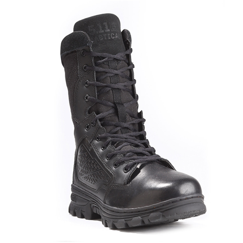 Full featured tactical boots with side zipper accessibility, Our EVO 8? Side Zip Boots are built for speed, stamina, and lightweight performance that won’t slow you down. Side-zip accessibility for quick on and off 14mm heel to toe drop for an accelerated stance Ortholite insole Full grain polishable leather and 1200D nylon 5.11 oil and slip resistant outsole Fence climbing lugs Friend finder tracking logo Non-metallic construction Full length EVA midsole Nylon shank Genuine YKK zipper hardware Extra thick sausage laces Imported