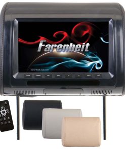 Farenheit Universal 9″ Headrest (Single) includes 3 Color Skins (BlackGreyBeige) Dual CH IR Tran
