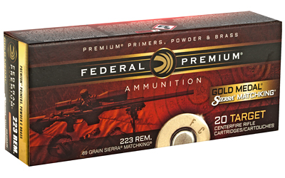 Federal Gold Medal Match, 223 Remington, 69 Grain, Boat Tail Hollow Point, 20 Round Box GM223M
