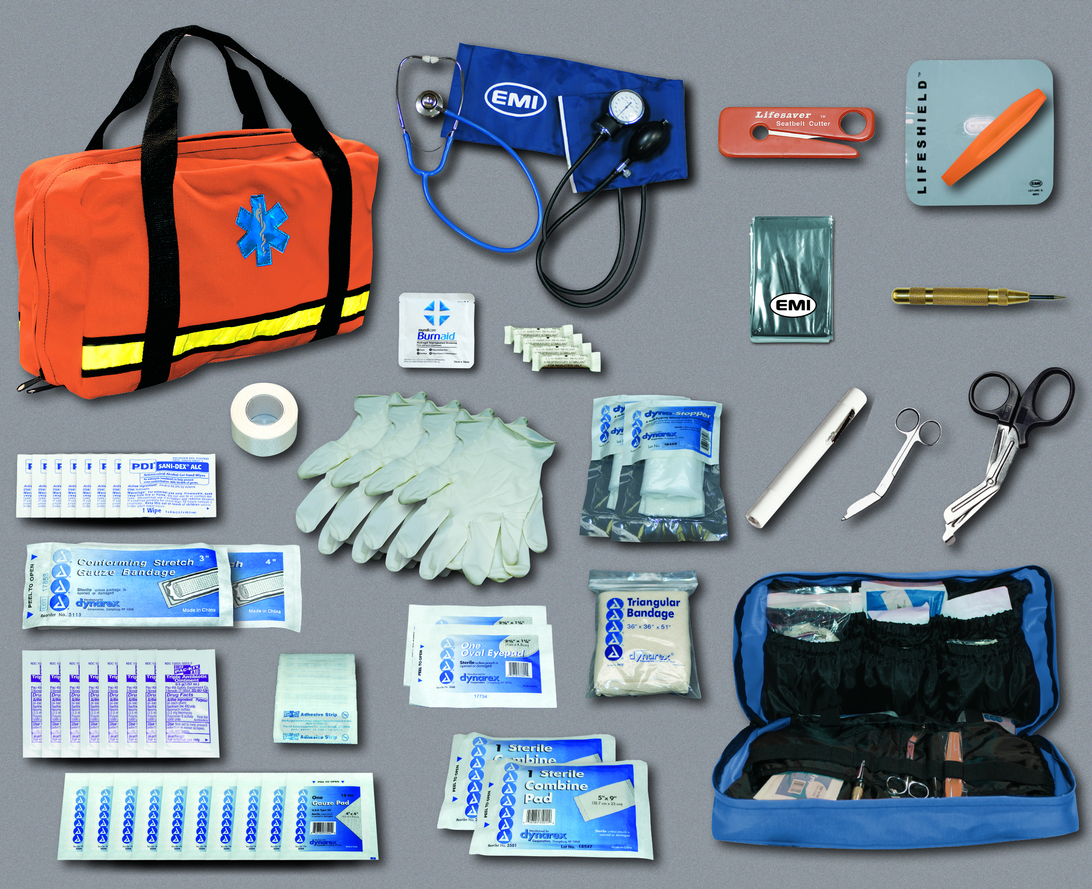 Includes: Bandages and dressings Airway management EMS supplies EMS equipment Instrument pack