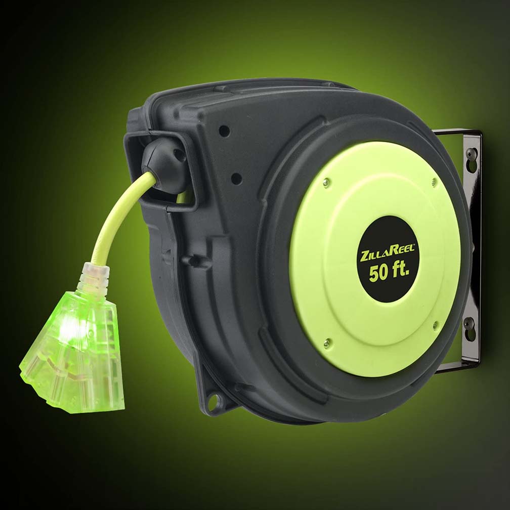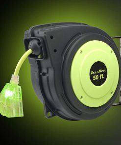 Flexzilla Extension Cord Reel 50′ 14/3 AWG SJTOW Grounded Triple Tap Outlet Indoor/Dry Locations
