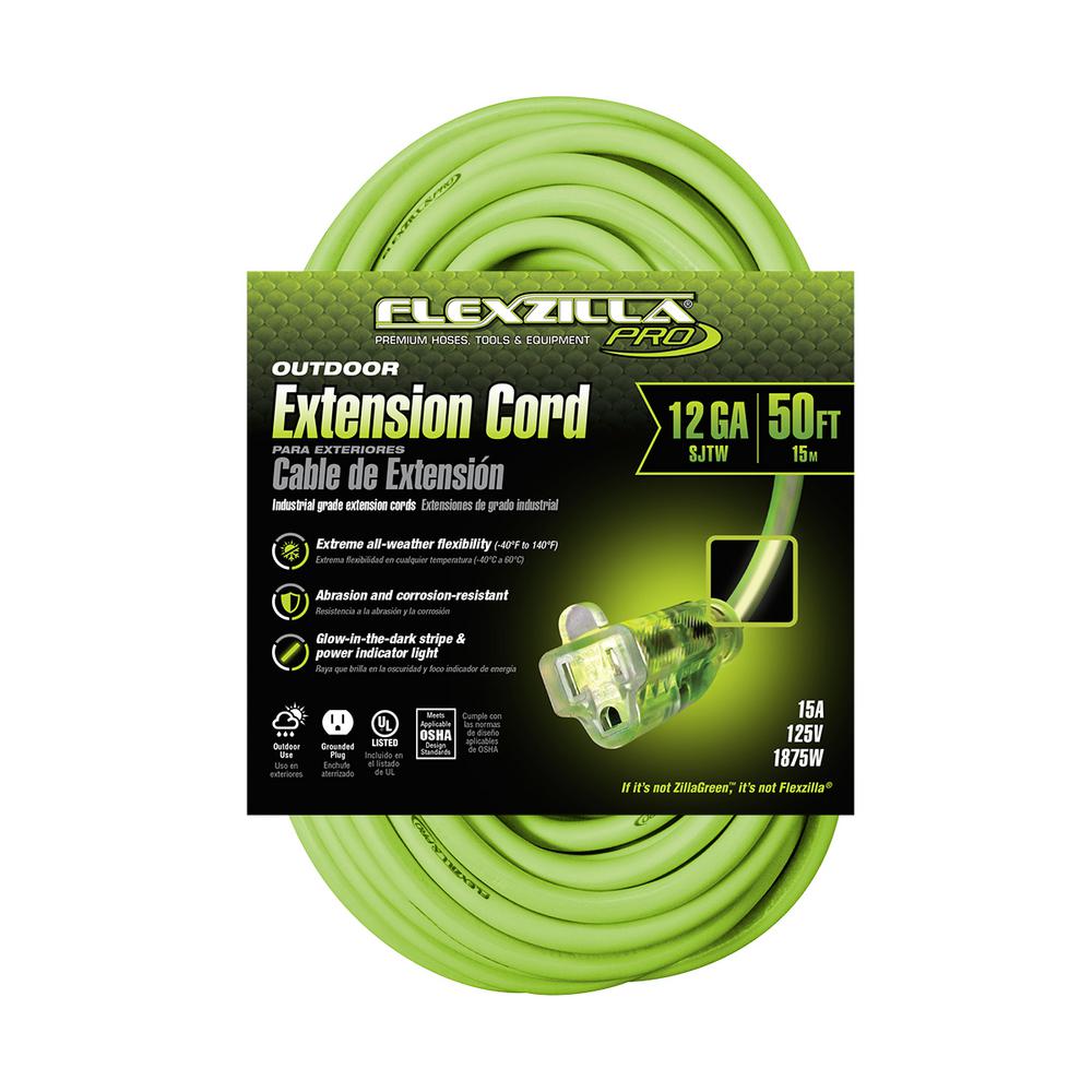 Flexzilla Pro Extension Cord 12/3 AWG SJTW 50ft Outdoor Lighted Plug