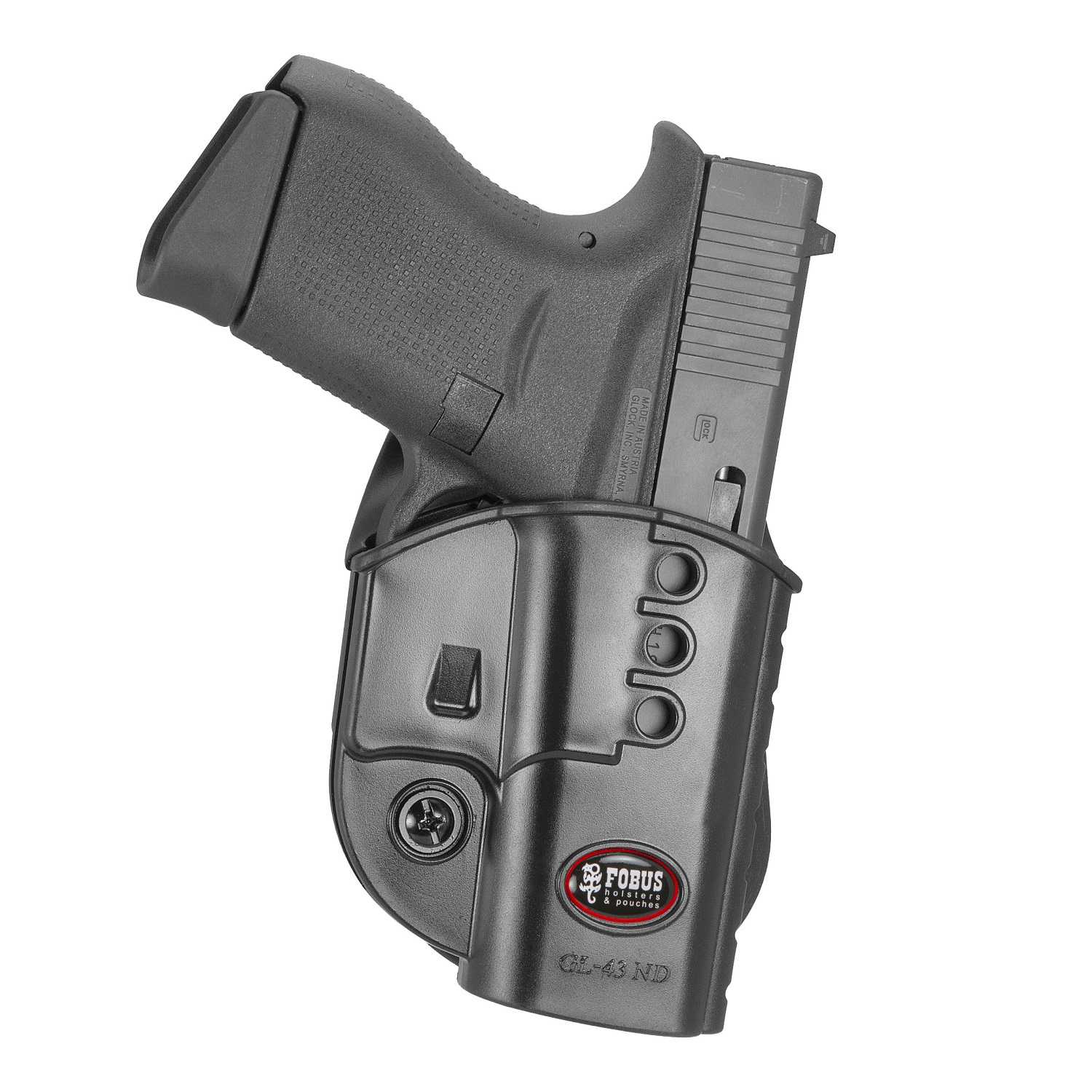 The Evolution Series is a passive retention holster that includes a retention adjustment screw. The tension screw is not pre-set and allows for retention pressure to be adjusted based upon personal preference. When un-holstering, do so in a deliberate and rapid upward motion. Passive retention is automatically engaged upon re-holstering.