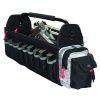 The GPS: Wild About Shooting Medium Range Bag is a practical option for handgun and long gun shooters. This range bag features the Visual I.D. Storage System with clearly marked pockets for ear plugs, shooting safety glasses, shooting targets, binoculars, and more. This range bag is equipped with lift ports on each end that allow you to maneuver the bag more easily. Features padded walls and bottom to protect firearms when traveling to and from the range. The shoulder strap is reinforced with metal hardware to increase the durability of this bag?s hands-free carry option. The Medium Range Bag also features lockable heavy-duty zippers that allow for secure, legal transport of your firearms. Within the front pocket are specialized magazine pockets and elastics for holding a cleaning rod and gun cleaning spray. The wide U-shaped top opening offers easy access to the range bag?s contents such as large ammo boxes. The Medium Range Bag offers convenient, secure transportation for your ammo, handguns, and other shooting accessories.