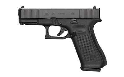 Glock 45, Striker Fired, Compact Size, 9MM, 4.02″ Marksman Barrel, Polymer Frame, Matte Finish, Fixed Sights, 17Rd, 3 Magazines, Front Serrations, Ambidextrous Slide Stop Lever, Flared Mag Well, nDLC Finished Slide and Barrel, No Finger Grooves PA455S203