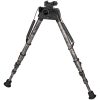 The Harris S-25CCAMO Bipod extends from 13 to 27 inches and attaches to a sling swivel stud. It features a three piece smooth leg construction and it swivels and tilts to compensate for uneven terrain. The bipod has a built in sling swivel stud to attach a sling. It is the tallest of the bipods and is useful in the snow and grass. It is ultralight weight at 22 oz. It is ideal for the sitting positino and may be better suited for the very tall.