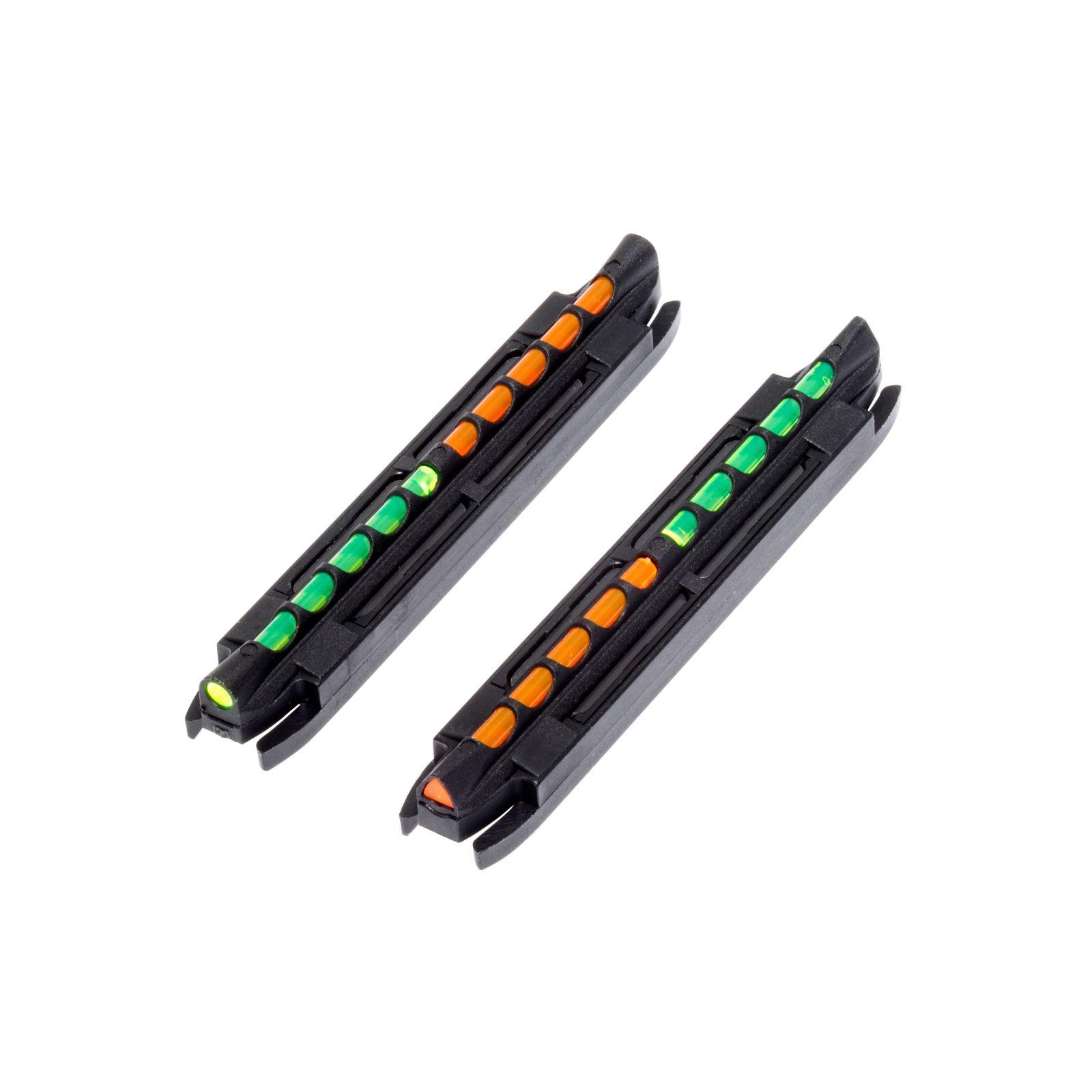The HIVIZ Two-In-One Magnetic Shotgun Sight with Reversible Green and Orange LitePipes fits shotguns with ribs from .171in to .265in (11/64in to 17/64in) (4.2mm to 6.7mm). It includes one round and one triangular replaceable Green and Orange reversible LitePipes.