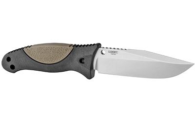 Hogue EX-F02, Fixed Blade Knife, 154CM, Plain Edge, Clip Point Blade, 4.5″, Stone Tumbled Blade Finish, Black Polymer Frame with Flat Dark Earth OverMolded Rubber Insert 35273