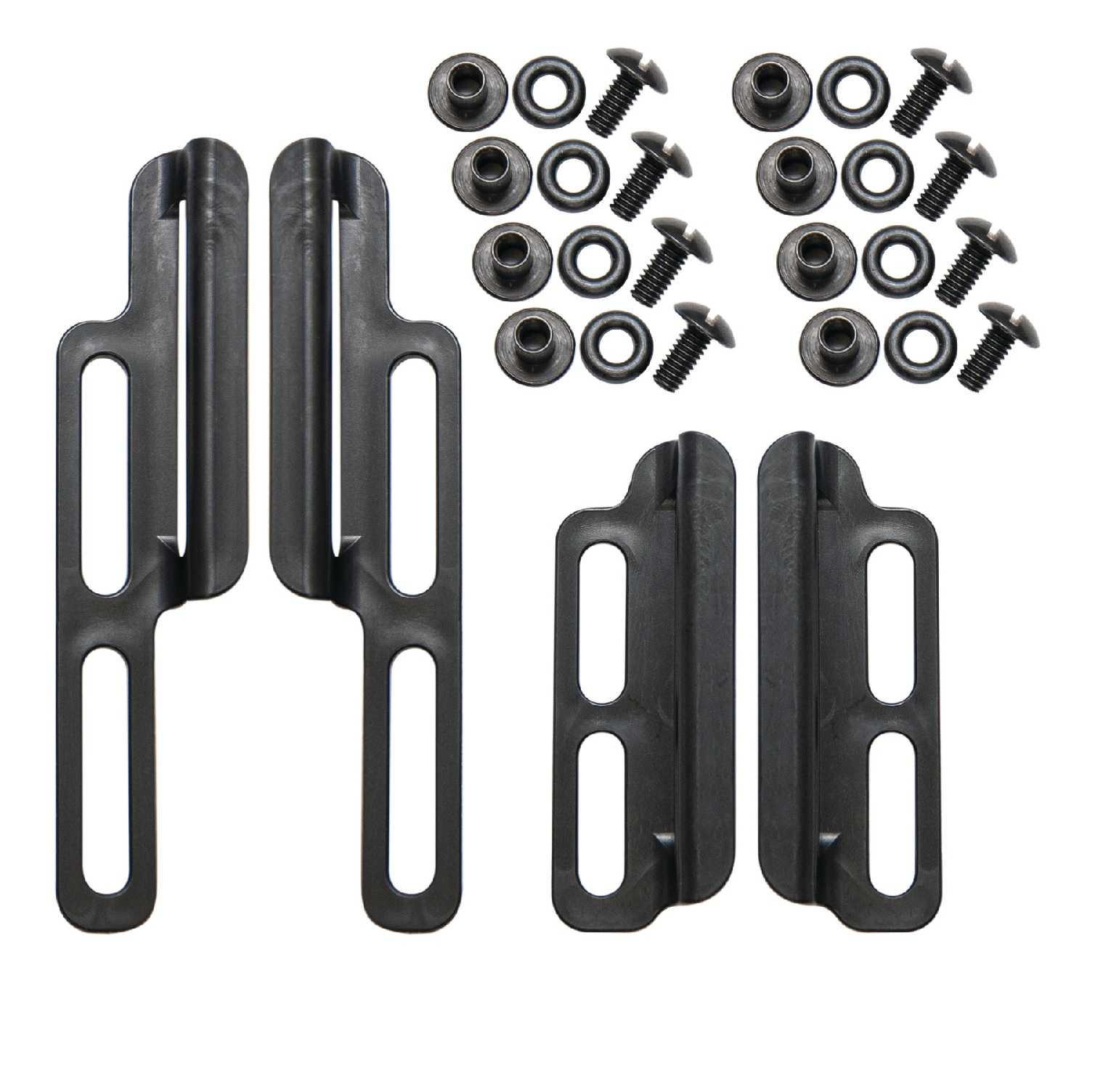 “The Ka-Bar attachment system is an accessory to most Ka-Bar hard sheaths. It is designed to work in a number of configurations, including horizontal carry, and may work with other products outside the Ka-Bar lineup such as holsters. It is MOLLE-comppatible- ; MOLLE straps and/or cordage NOT INCLUDED.This features 2 sets of loops, one large and one small,for a total of four. The attachement system is made from CELCON and comes with 8 slotted truss screws #8-32 x 3/8″”, and 8 posts #8 – 32 x 3/8″”, and 8 spacers”