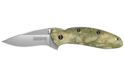 Kershaw Scallion, 2.25″ Assisted Folding Knife, Clip Point, Plain Edge, 420HC/Satin, RealTree Hardwoods HD Aluminum, Thumb Stud/Pocket Clip 1620C