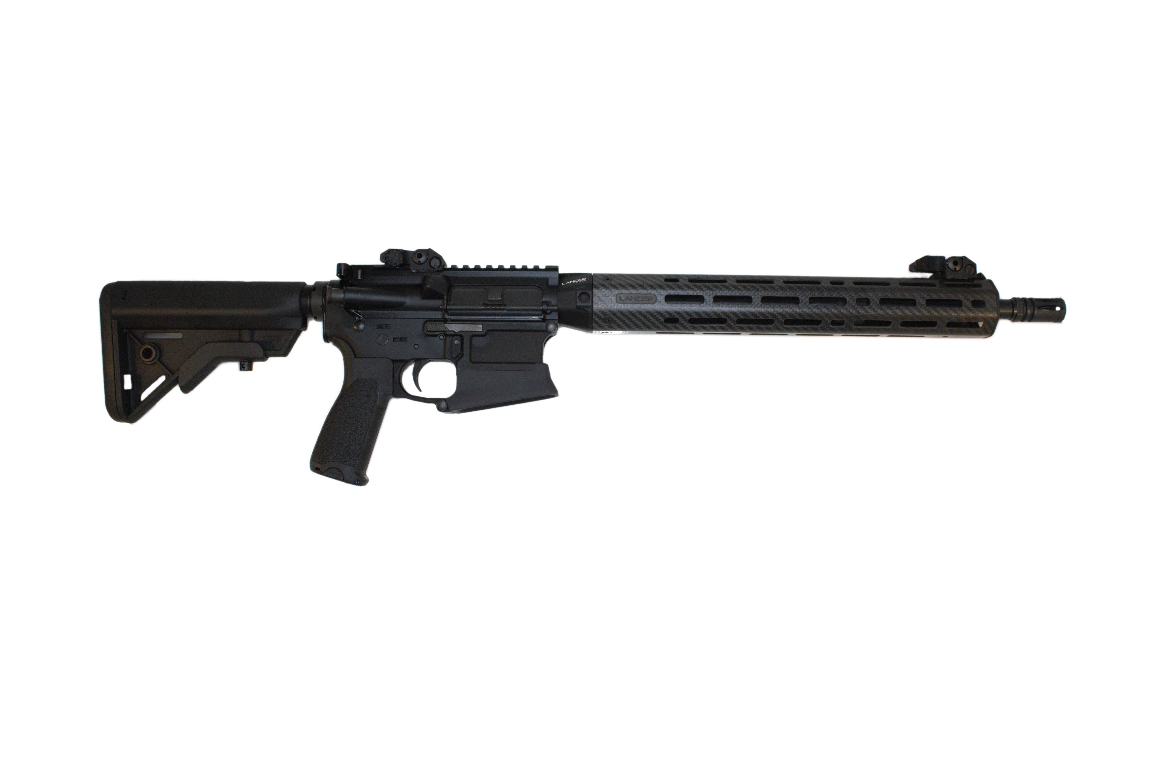 The L15 Defense is Lancer’s core rifle package which includes upgraded components typically only found on high-end competition and tactical rifles. The L15 Defense sports a high quality 16” mid-weight, chrome-lined steel barrel with smooth shooting mid-length gas system. The B5 Bravo adjustable stock and BCM Gunfighter pistol grip provide top-tier ergonomics and control. Lancer?s LCH5 carbon fiber handguard has a 2” front sight rail for backup iron sights and the M-Lok slots will accept any M-Lok compatible accessory rails or mounts.