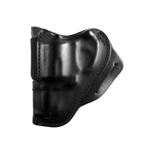 The abbreviated body of this right-handed holster allows use with various lengths of a handgun, so you can keep using your favorite holster with either full size or compact models. The belt loop sewn to the back of the holster keeps the handgun close to the waist, and the trailing belt slot pulls the butt of the gun into the body for greater concealment. The reinforced holster mouth assures easy re-holstering, and the adjustable tension screw allows fine tuning the ease of the draw. The injection-molded sight track allows the use of even high custom sights and keeps them from dragging on the holster. Compact design aids concealment and increases comfort. This model fits S&W J Frame, Taurus 85, and Ruger SP101.