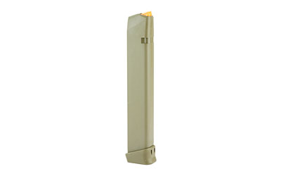 Glock OEM Magazine, 9MM, 33Rd, Fits GLOCK 17/34, Cardboard Style Packaging, OD Green Finish, Orange Follower 47462